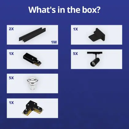 Bright Choice Complete Set 1-Phase Rail L 1 x 1 Meter Black | incl. 5x Spot + GU10 2700K 3W Dimmable + End Cap, Power Connector and L -Connector