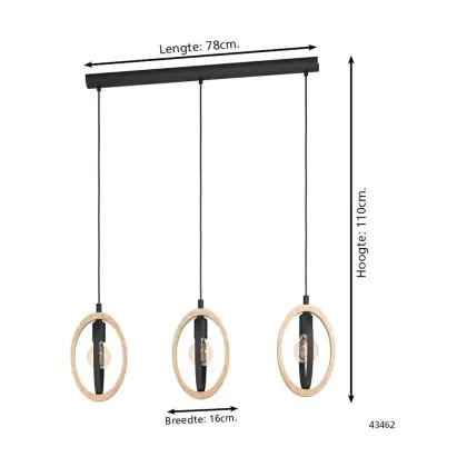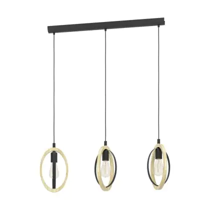 Eglo Pendant Basildon Steel Wood Black Brown | IP20 - Suitable for 3x E27
