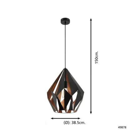 Eglo Pendant Carlton 1 Black, Copper | Suitable for E27