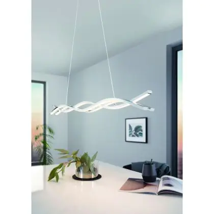 Eglo Pendant Lasana 2 Steel Aluminium Chrome White 35W 5300lm - 830 Warm White | IP20