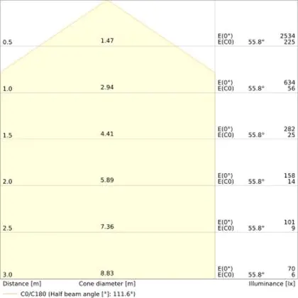 ![]() The colour code is a combination of colour rendering (CRI) and light colour (Kelvin). The first number indicates the colour rendering (1 = very poor colour rendering, 9 = maximum colour fastness). The second and third number contains the light colour. Example: the colour code 830 consists of good colour rendering (8) and warm white light (3000K). |