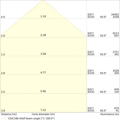The Luminous Efficacy (lm/W) indicates how efficiently a light source uses energy. We divide the number of lumens by the wattage. The higher the number, the more efficient a product is in terms of energy consumption. LED lighting has a considerably higher lumen/Watt ratio than conventional lighting.