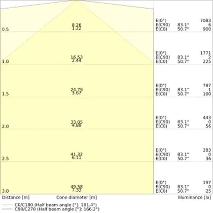 The Luminous Efficacy (lm/W) indicates how efficiently a light source uses energy. We divide the number of lumens by the wattage. The higher the number, the more efficient a product is in terms of energy consumption. LED lighting has a considerably higher lumen/Watt ratio than conventional lighting.