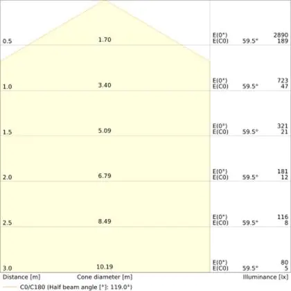 ![]() The colour code is a combination of colour rendering (CRI) and light colour (Kelvin). The first number indicates the colour rendering (1 = very poor colour rendering, 9 = maximum colour fastness). The second and third number contains the light colour. Example: the colour code 830 consists of good colour rendering (8) and warm white light (3000K). |