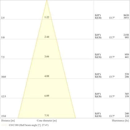 A beam angle indicates the angle of the light beam coming from a light source. The smaller the radiation angle in degrees (D), the narrower the beam angle.