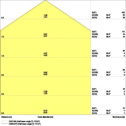 ![]() The colour code is a combination of colour rendering (CRI) and light colour (Kelvin). The first number indicates the colour rendering (1 = very poor colour rendering, 9 = maximum colour fastness). The second and third number contains the light colour. Example: the colour code 830 consists of good colour rendering (8) and warm white light (3000K). |