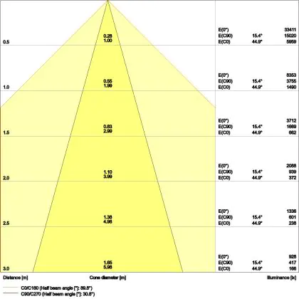 ![]() The colour code is a combination of colour rendering (CRI) and light colour (Kelvin). The first number indicates the colour rendering (1 = very poor colour rendering, 9 = maximum colour fastness). The second and third number contains the light colour. Example: the colour code 830 consists of good colour rendering (8) and warm white light (3000K). |