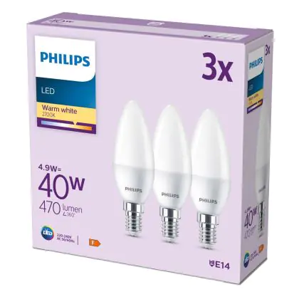 Multipack 3x Philips Bulb LED E14 Candle Frosted 5W 470lm - 827 Extra Warm White