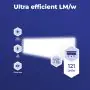 The Luminous Efficacy (lm/W) indicates how efficiently a light source uses energy. We divide the number of lumens by the wattage. The higher the number, the more efficient a product is in terms of energy consumption. LED lighting has a considerably higher lumen/Watt ratio than conventional lighting.